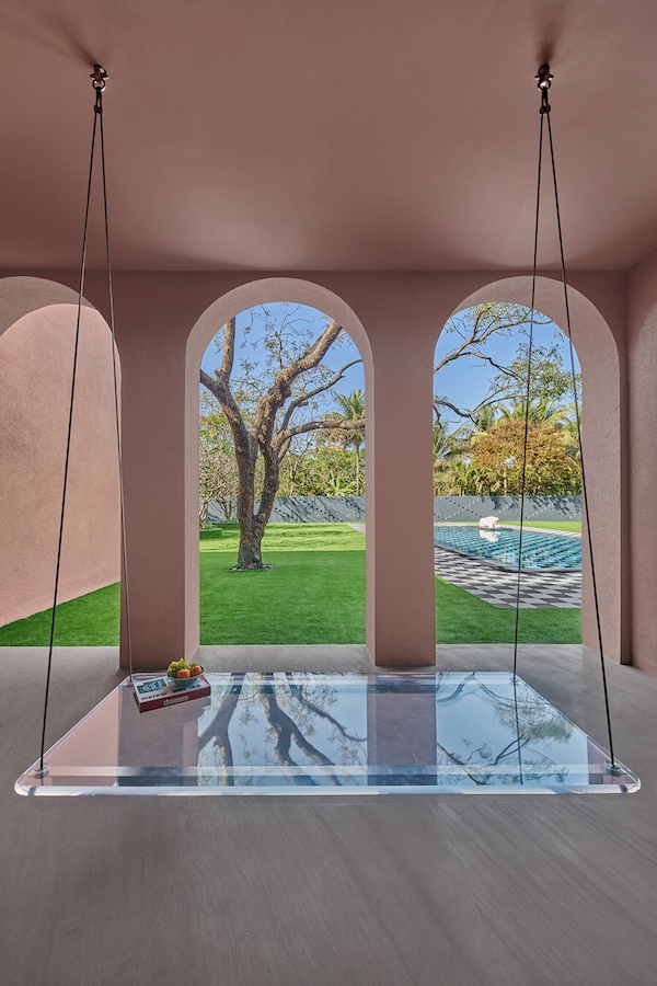 To retain visual coherence, Pinakin Patel uses glass for a swing that looks out onto the lawn. (Image Credits: Ashish Sahi)