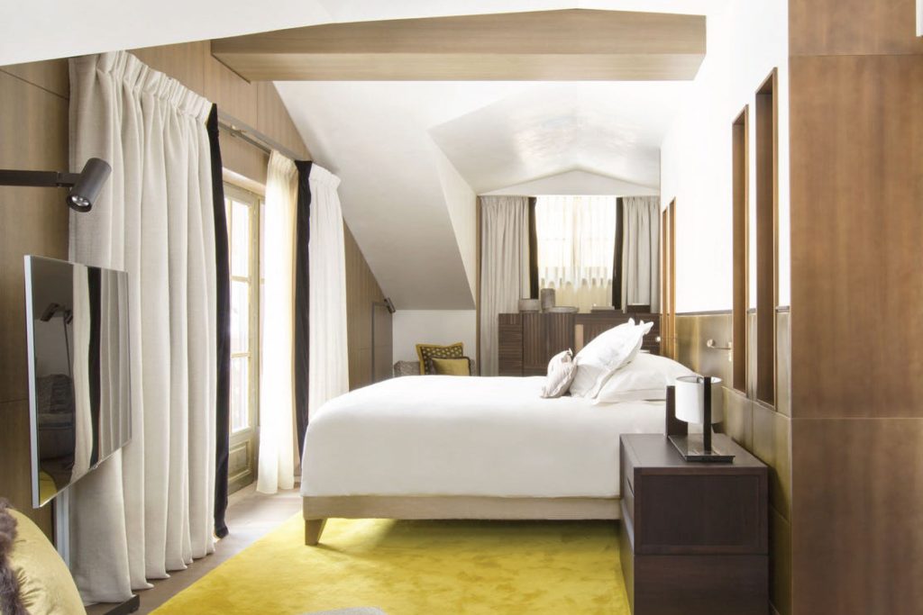Pure Alpine tradition and contemporary design in an intimate setting best describes this mountain retreat. At the foot of the Mont d’Arbois, The Four Seasons Hotel Megeve is the former residence of the Rothschild family– the famous banker clan in France who was instrumental in turning Megeve into a ski resort in the 1920s. At the entrance, the La Cry ski lift provides direct access to the area’s famous Les Mandarines piste, making this the only ski-in ski-out hotel in Megève. The hotel features 55 rooms and suites and was brought to life by architect Bruno Legrand and interior designer Pierre-Yves Rochon who stayed true to the rich legacy of the Rothschild family. The rooms and suites take a modern approach to the classic mountain chalet and come fitted with panoramic windows and private balconies with a stunning view of the French Alps. There are scores of snow adventures to sign up for that range from ice-fishing to dog-sledging when they’re not skiing.
