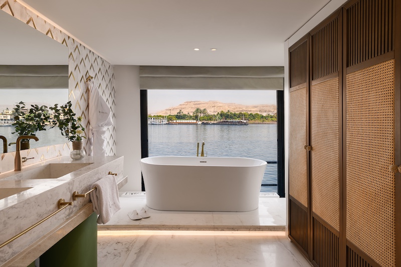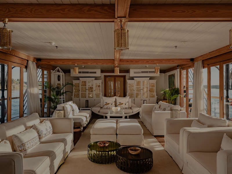 Before slow travel became a popular term, Nile Cruises along the tranquil river offered a once-in-a-lifetime journey into the past. Ruby-red sunsets bathed the palm groves and endless amber desert in a warm glow, while the undeniable connection between Egypt’s natural beauty and its ancient sites never failed to awe. It is this timeless experience of the river landscape that has remained unchanged. More recently a new breed of ultra-stylish boutique luxury river boats and cruises billed as floating mansions offer an elevated experience with plush cabins that feel more like grand suites. Fine dining curated by top chefs, and wellness amenities such as sauna on the observation deck—perfect for soaking in breathtaking scenery. The interiors seamlessly blend sophisticated design with the authentic spirit of Egypt.