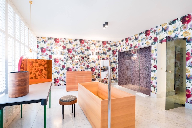 The hotel features 10 rooms and suites adorned with out-of-the-box designs by the Belgian designer Ann Dierick of Animalick Designs. Think Marilyn Monroe monoprint wallpapers, gold drapes, opulent crystal chandeliers, striking Bisazza Bagno line bathroom with Hermes toiletries and designer furnishings that transcend the ordinary. The presidential suite designed as a modern-day Loius XIV-style opulent sleeping chamber showcases lace wallpaper, a crystal chandelier, an open vintage fireplace, layered with animal skins, and designer drapes by Dries Van Noten.