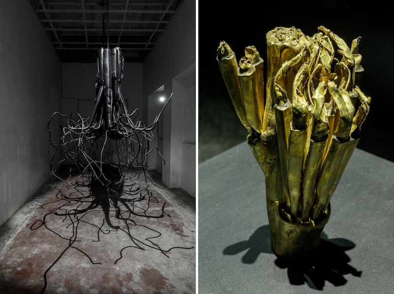 This duality inspires all his creations, where metal scraps morph into lifelike forms, writhing with tentacles and twisted silhouettes that resonate with the malleability of matter folding unto itself ad infinitum. Moulded from brass, copper, iron, radiators and other mechanical components; Sinha dabbles in the realm of human perception, unearthing rare beauty in the overlooked paraphernalia of our lives. Â