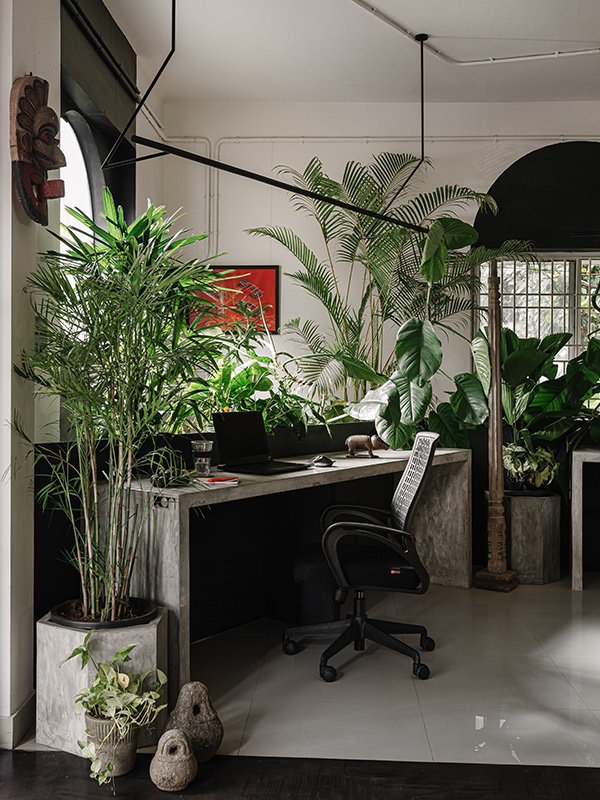 The greens serve as a decor accent adding to the maximalist vibe of the space. (Image Credits: Kuber Shah)