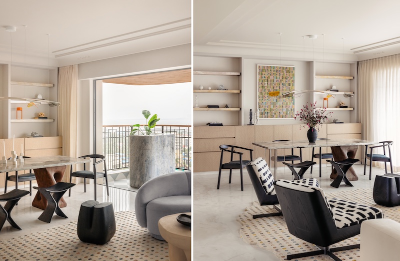 While minimalism remains the backbone of Apartment O2, the design’s subtle accents and natural light ensure the space remains dynamic. “At every stage, the planning emphasised the importance of liveliness, connection, and adaptability, resulting in a home that is not only elegant but also warm and inviting,” explains Vaid. As a result, Apartment O2’s nifty design utilises open spaces by connecting and shrouding them at once, offering a peaceful refuge where the family can unwind away from the city’s constant energy.