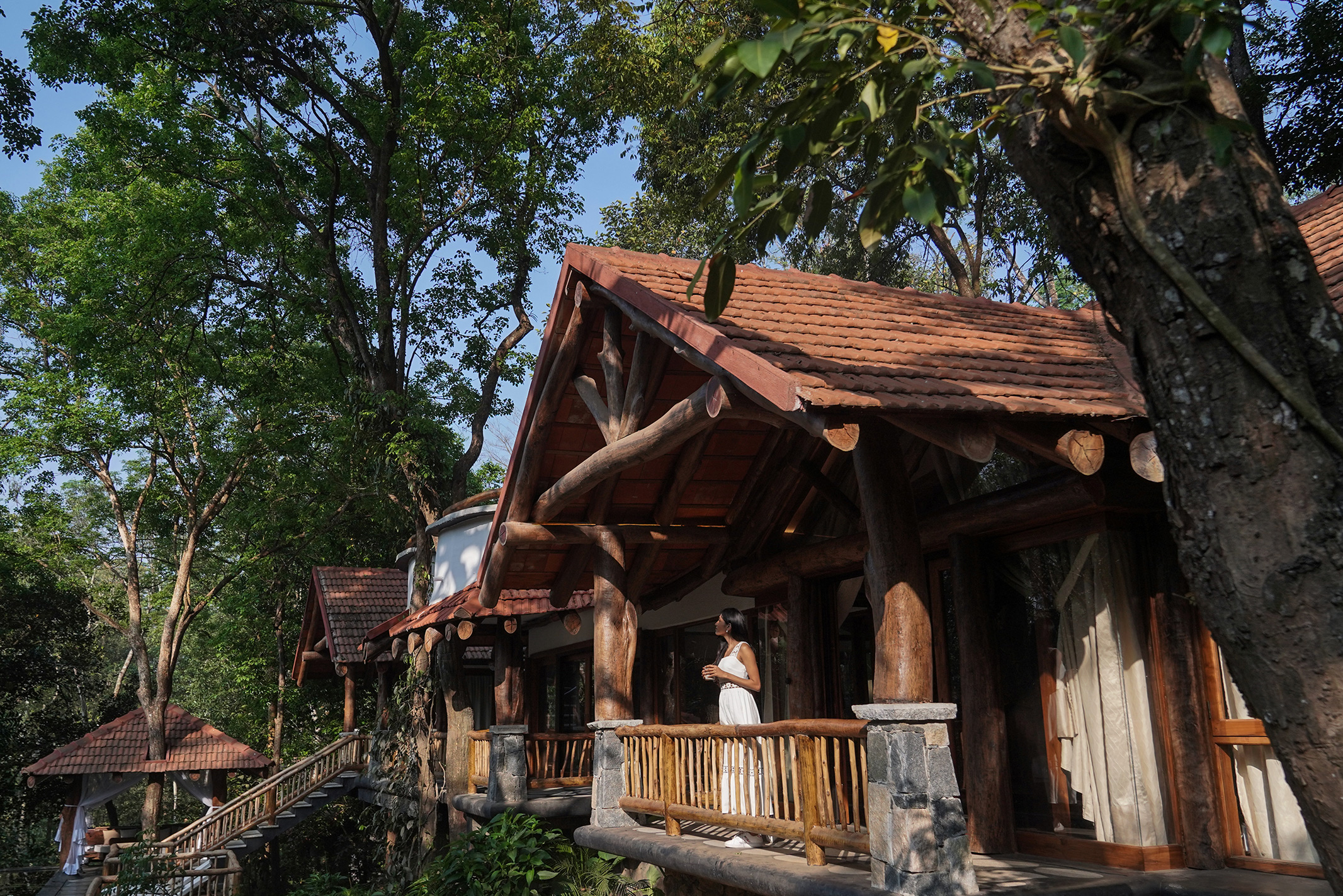 What equally captivates is the striking art collection curated by Rajiv Menon, founder of the trailblazing Rajiv Menon Contemporary in Los Angeles, a gallery dedicated to championing still-underrepresented South Asian voices in contemporary art. A thread of magical realism loosely unites the artworks that adorn the walls of the lodgings. Among them, New York-based artist Maya Varadaraj’s self-portrait ‘In Blue and Melancholy’ stands out, redefining feminine narratives and visual representation. There’s the dreamlike impressionism in Mustafa Mohsin’s ‘Chaand Raat in East Village’ that deck up the lounge.