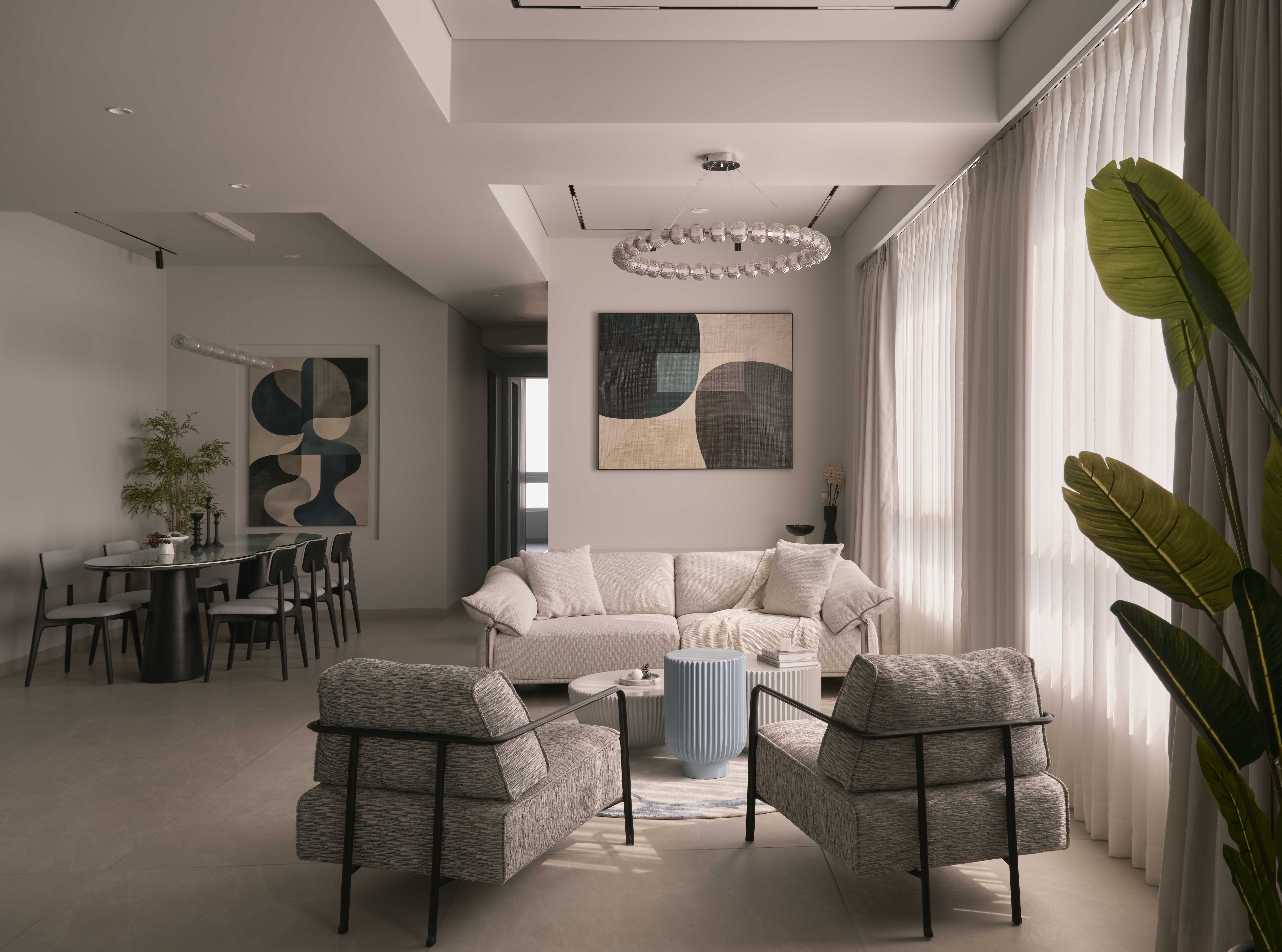 Many homes in Mumbai boast of being near the sea, and rightly so. But this refreshingly elegant abode on the city’s eastern waterfront brings the sea right inside, not by spectacle, but through subtlety. Aptly dubbed ‘Aqua Abode,’ the home is pieced together as a puzzle of coastal influences, inspired by the sea and its surroundings, offering a kind of serenity that city life rarely allows. Helmed by Principal Architects Rashi Lalaji Mehta and Shikha Shah of Studio Raha, the 2184 sq-ft apartment is perched on the 33rd floor in the city’s skyline, and unfolds softly across a butterfly layout, with the living area positioned at the centre and five bedrooms on either side. “The homeowners sought something fresh. A home that felt lived in,” says Mehta. “They came to us with a clear brief of clean lines, minimalism and a visual language that evokes calm. The sea, with all its beauty, felt like the most intuitive inspiration.”