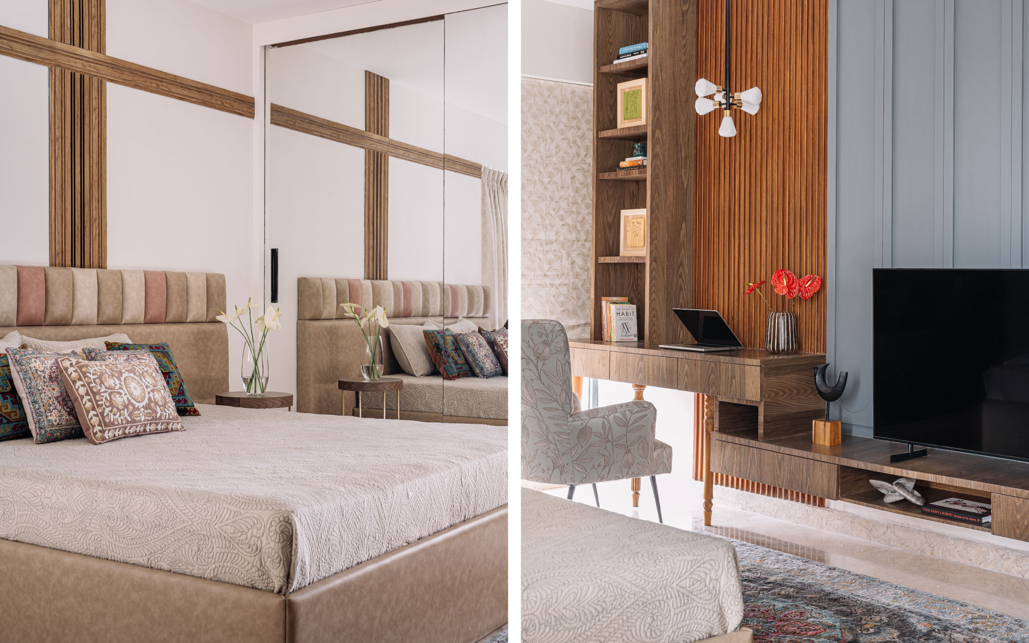 This home is a physical manifestation of Agarwal’s design philosophy, which places human experience at the forefront. She believes a space should feel “layered, intentional, and poetic,” revealing its details slowly to encourage a closer look. This signature style is showcased throughout the apartment in the cohesive use of panelling, embossing, and layered textures. In a final nod to her holistic approach, Agarwal also focused on environmental sustainability. She deliberately picked natural and durable materials and finishes. This makes sure that the home is not just practical and aesthetically pleasing, but also built to last.