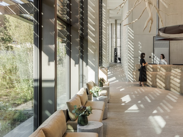 The interiors of Hôtel des Horlogers are contemporary, simple and earthy, reflecting the surrounding Risoud forest. Image Credit: Audemars Piguet.