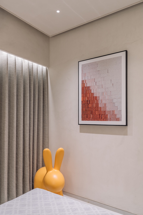 In the children’s bedroom, the mood shifts towards a whimsical aesthetic. The designers have employed calmly undulating silhouettes, allowing the room to embody a sense of youthful exuberance. Arches on the walls and cove lighting orchestrate a stunning backdrop, making the interiors feel full of life. Wall-mounted lights and a petite side table ensure the room is not just a place to sleep but a world of joyfulness and imagination.