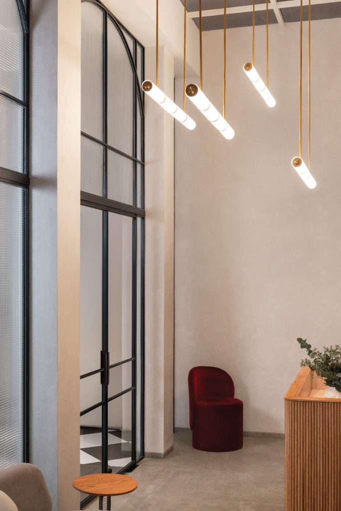 Light plays a crucial role in any retail environment, quiet easily making or breaking a space if not integrated in a well-considered manner. In the case of this site that would soon showcase the brand’s lab-grown diamond jewelry, light—both natural and artificial—was masterfully controlled to prevent distractions or an overall washed-out appearance. Thanks to generously proportioned windows, the space harnesses the generous flow of natural light bringing in a palpable authenticity to how the jewelry was perceived. Then, a nuanced artificial lighting scheme was integrated with precision after trial and error. “We carefully calibrated the lighting to reveal the diamond’s brilliance without overwhelming the eye.” Further, an existing skylight in the reception allowed for an abundance of natural light, prompting the team to work with the inherent strengths of the heritage structure.