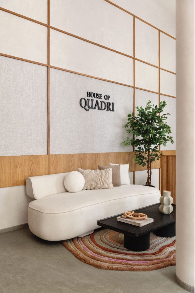 The House of Quadri store in Fort is an exemplification of contemporary minimalism. Exuding warmth, its design incorporates earthy tones, natural textures and a muted palette punctuated by rich red accents that echo the brand’s core identity. The project, says Kumar, was as much about shaping a spatial experience as it was about defining the brand’s visual and emotional identity. It would also set the stage for future retail zones.