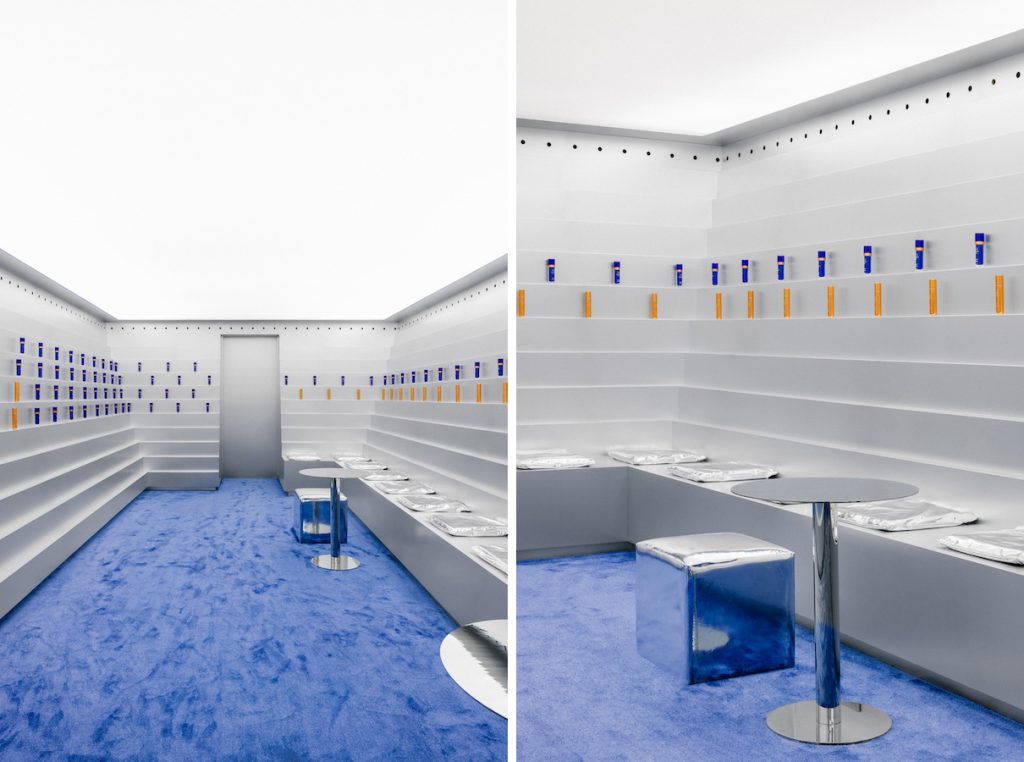 German beauty brand Augustinus Bader unveiled a pop-up at its Paris flagship. Designed by Harry Nuriev of Crosby Studios, it adapts a dystopian aesthetic with the brand's signature blue.