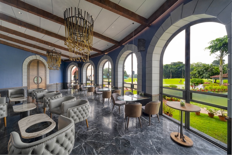 “Retrofitting the arches, joists and cornices required a careful balance of preserving the heritage elements while enhancing their proportions,” says Bihani. The Prohibition era-style, sumptuous ‘Bar at 19’, was refurbished to be an apotheosis of functionality and aesthetics. Inhabiting a curvilinear verandah with cascading steps, its formidable arches promise an animated tête-à-tête with players post-match sessions or simply a quiet luncheon with a view of the lush manicured fairway.