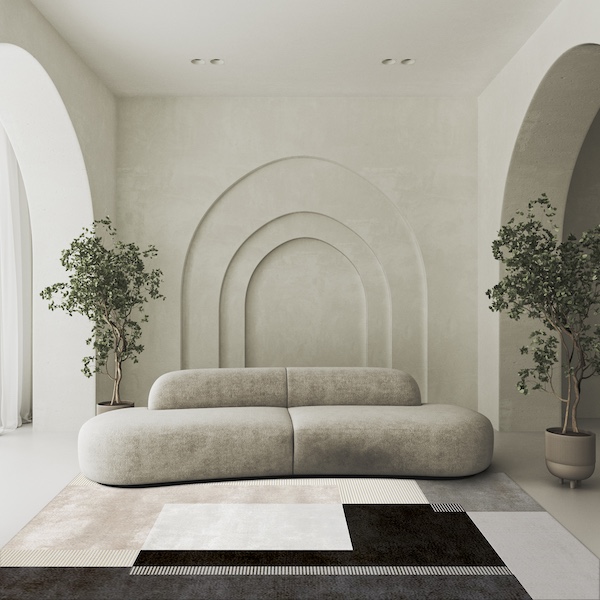 Focusing on transcending the conventional the brand, “shifted to modern minimalism by introducing carpets with geometric patterns, solid colours, and subtle textures,” Khanna emphasises. For instance, the ‘Dimensions,’ series sutures a new chapter referencing the world’s current pace, translating its dizzying motion to match its minimalistic character. Defined by repetitive patterns and clean lines, the rug’s uncanny silhouettes with geometric shapes are imbued with a sophisticated Scandinavian hygge vibe. The neutral palette, accented with hints of pastel hues, offers a striking visual contrast while elevating and illuminating whichever space they are introduced to with refined elegance.