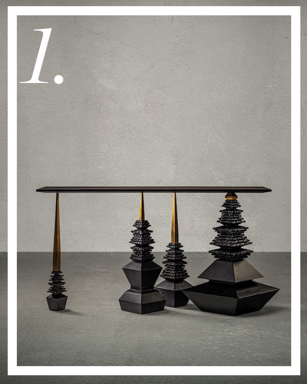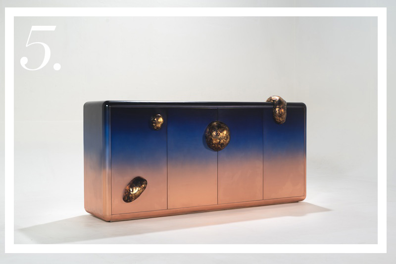 Crafted from copper, brass and plywood, this artful piece is truly a fusion of style and functionality. Scarlet Splendour’s Celestial credenza is covered in copper with a gradient of blue and copper hues that mimic the ethereal nature of coppery blue skies, at the same time luminous planets cast in brass appear to float across the sky. This credenza features roomy interiors with functional drawers and trays, making it an excellent choice for the living room. Founded by Ashish Bajoria and Suman Kanodia in 2014, Scarlet Splendour is renowned for its modern, sculptural luxury furniture and, of course, its innovative international collaborations.