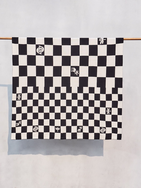 Inspired by the iconic black and white tiles found in Moroccan courtyards, Nicobar’s ‘Mosaic Throw’ subverts the muted tones and weaves together timeless elegance and tactile luxury. Crafted from airy and soft cotton jersey, this monochromatic wonder exudes a classic checkered pattern punctuated by whimsical motifs. Perfectly suited for quiet corners or expansive spaces, this fabulous piece embraces you on chilly evenings or languid afternoons.