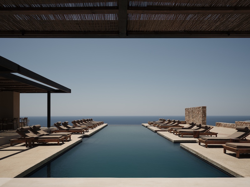 Known for drawing a community of music lovers, the luxury suites have Klipsch sound systems while the bar has been designed as a hi-fidelity listening space, inspired by the Japanese jazz ‘Kissatens’ of yesteryear, where music is played from Gundari’s extensive vinyl library. At ‘Orizon’ the Michelin-starred chef Lefteris Lazarou serves refined Greek fare and to make the dining top-notch, guests are invited to a bespoke dinner where they select their produce from Gundari’s farm. The subterranean spa is the perfect spot to slip into deep relaxation with sound baths, energy healing, yoga, and more. The resort owns six Fiat 500e Cabrios, one hybrid Jeep Renegade, one electric Mini Moke, 12 electric bikes, and a Cooler Kub 250S e-motorbike— all available for guests to take on their adventures across the island.Â