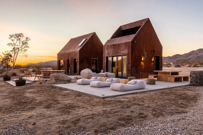 Imagine twisted Joshua trees piercing the sky, while granite giants stand sentinel over hidden canyons and desert mountains as a permanent backdrop to your vacation. This is Joshua Tree, a small town, a couple of hours from Los Angeles. Nestled inside the Joshua Tree National Park and packed with trails for hiking, Folly is born from an irresistible urge to craft an unconventional escape for a new generation of travellers. ​ It is a serene escape where nature and architecture converge and are reflected in the rustic feel of the cabin suites, offering a respite from the ordinary while cocooned in modern, minimalist luxury. Folly cabins are whimsical steel structures washed in earthy brown. Designed by the founder, and architect Malek Alqadi, Folly showcases a remarkable and unconventional open-space structure. Its interiors pull off a balance between minimalist aesthetics and the art of experimentation.Â