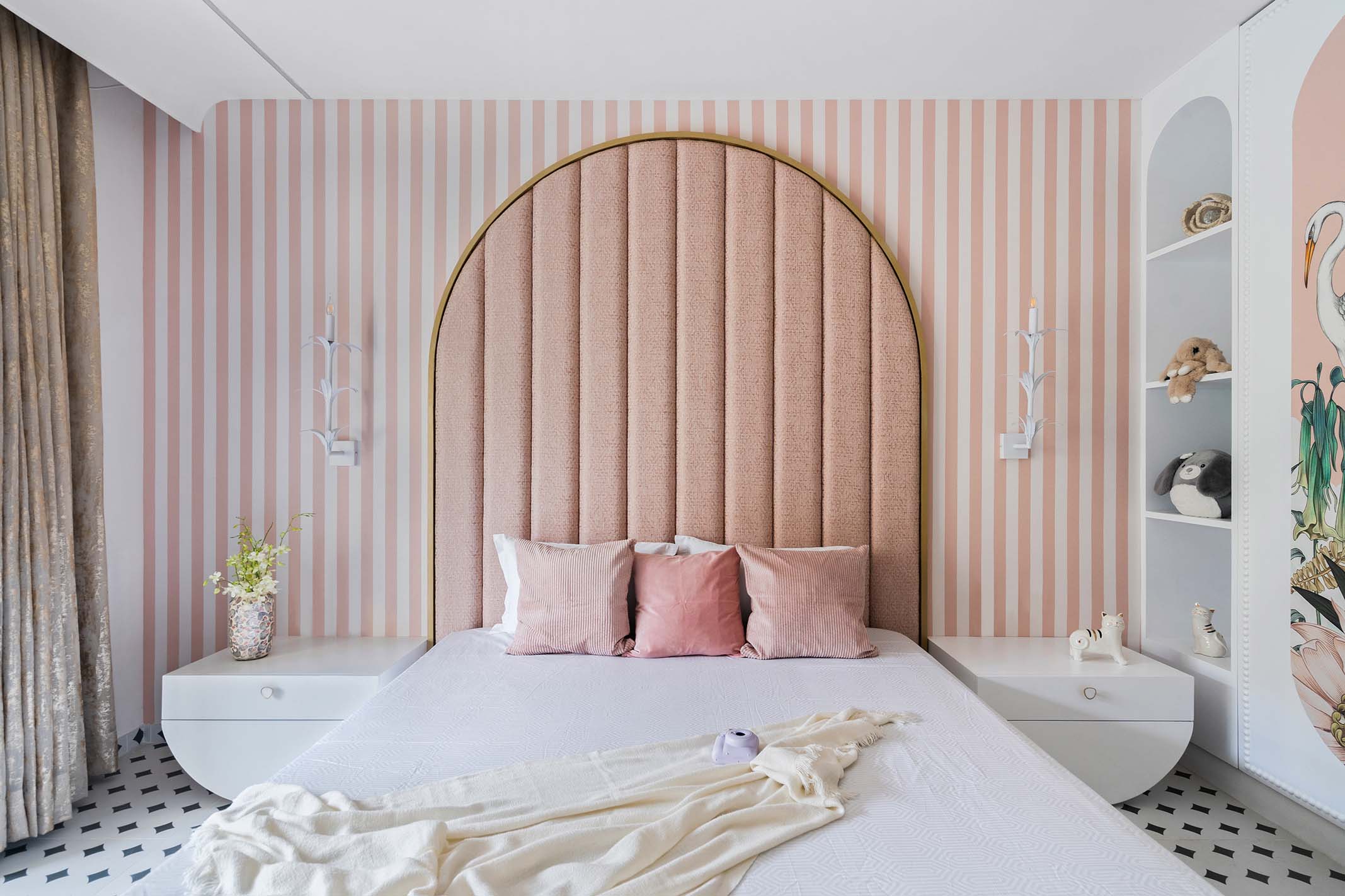 “Their (stripes’) linear rhythm introduces a sense of order and continuity, enhancing the visual flow without the need for additional layers,” notes Edwin Stanley Co-founder and Principal Architect at Concepto Studio. Whether through wallpaper, textiles, or flooring, the right placement ensures stripes feel immersive yet effortlessly cohesive. For a coquette-coded sanctuary, begin with eclectic, contrasting stripes—be it on walls, upholstery, or even structural details like panelling—that become the room’s pièce de résistance. These conformist stripes, craft illusions; for instance, in petite spaces, horizontal stripes widen rooms, while vertical stripes elongate walls, subtly altering a room’s spatial perception.