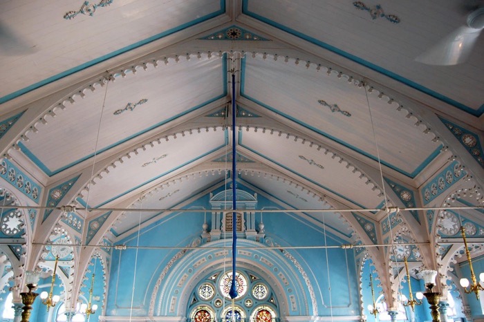 Over the years, the synagogue has been painted various colour schemes. The vivid blue seen today was selected a few years by the synagogue’s managing committee and adds a charming serenity to the structure.