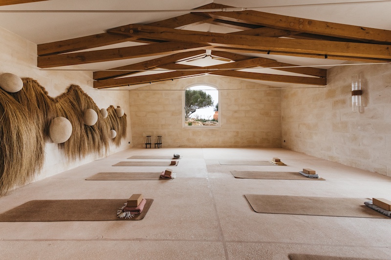 Atelier du Pont worked with local artists and craftsmen to give each room a unique identity and to craft site-specific works for Son Blanc’s social spaces. “Local artists Adriana Meunié and Jaume Roig, who normally work separately, pooled their know-how to create an installation for the yoga room of the Boyera. It’s an impressive piece that unites two materials in a harmonious silhouette inspired by the vegetation, the stone and the vegetation of the island,” said the designers at Atelier du Pont.