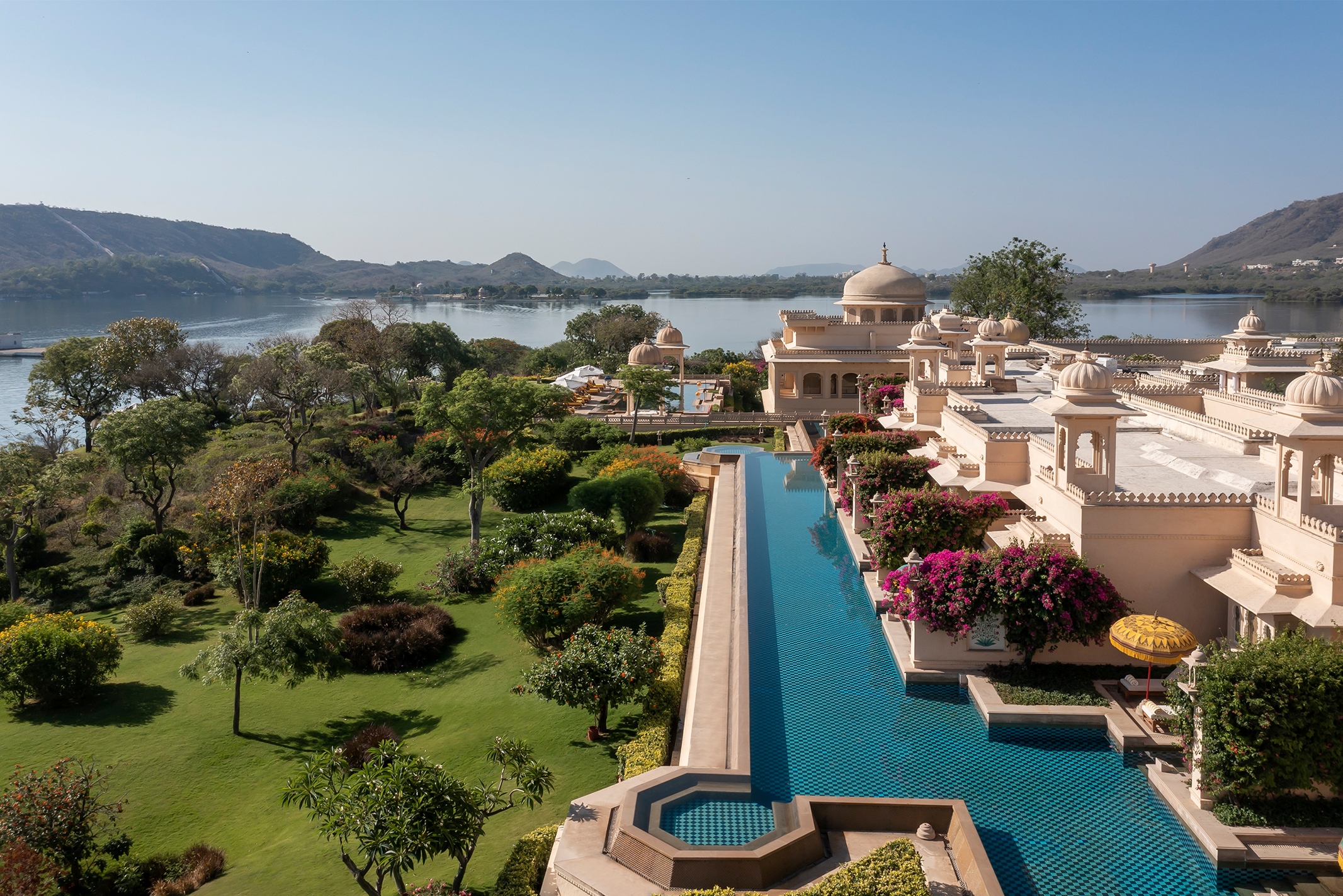 A big, fat Indian wedding demands a traditional backdrop that echoes its rich heritage. So, when Kalki Koechlin’s boisterous character Aditi in Yeh Jawaani Hai Deewani (2013) finally decides to get married, The Oberoi Udaivilas is the perfect location, echoing an old-school glamour. Subsequently, on the serene banks of Lake Pichola in Udaipur, amidst the towering domes, pointed arches, exquisite jharokhas (balconies), and intricate jallis (screens) that illustrate a traditional Mewar style, this property unfolds. Built on the 200-year-old hunting grounds of the Maharana of Mewar—a land that once hosted royal hunting parties—this hotel opened back in 2002.