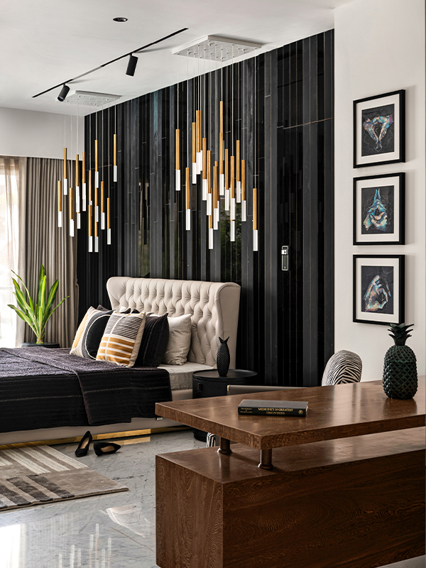bedroom’s very own lounge. The decorative lighting by Lafit Lighting adds the cherry