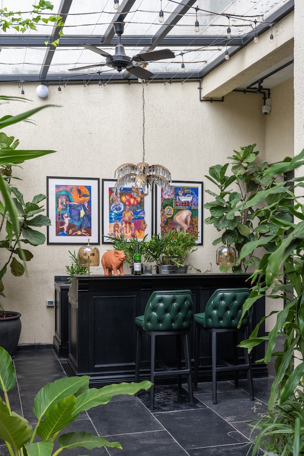 Kitschy decor objects from Baro embellish this bar conservatory. (Image Credits: Kuber Shah)