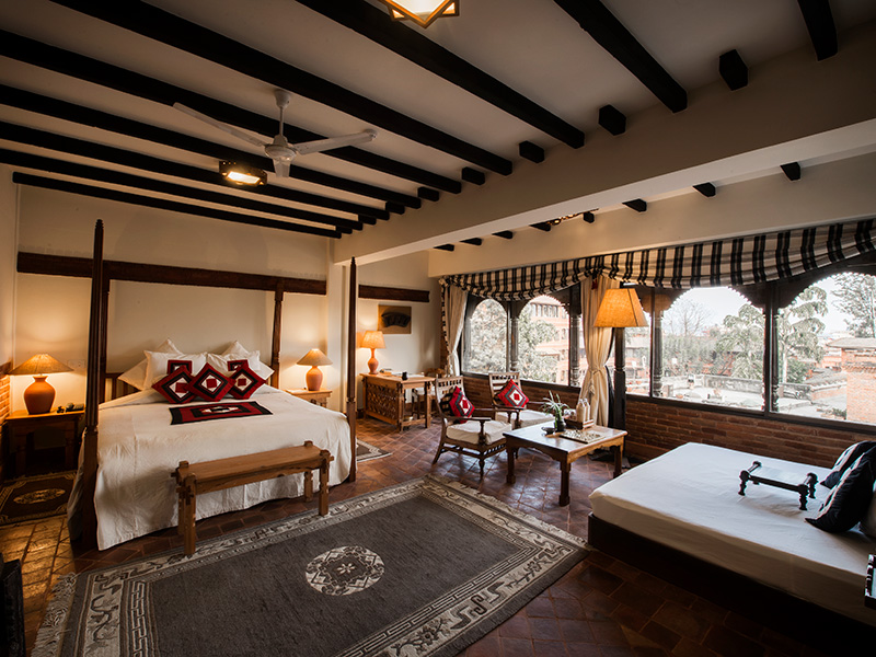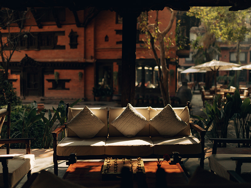 Any and every urban disturbance is superseded by birdsong within the peaceful environs of this inward-facing hotel set around a beautifully tended courtyard. It’s safe to say that a sense of cultural appreciation for Nepal’s artistic heritage lingers long after one’s stay; wooden carvings depicting Hindu and Buddhist motifs and mythology serve as visual delights in every nook and corner.