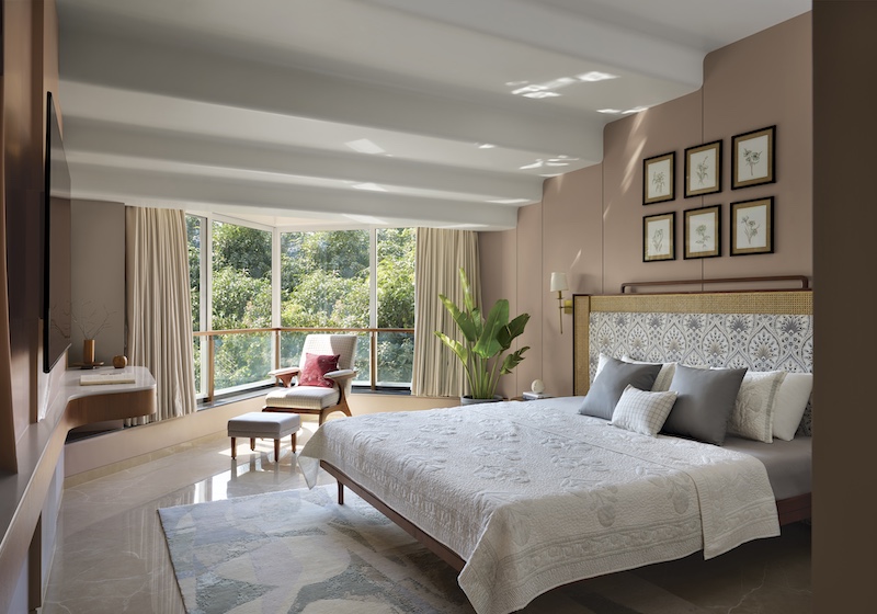 The ability to shape-shift, improvise gracefully and surmount any curveballs that might land in their court is what sets the design team at Gautam Shewa Architects apart from their peers. “Initially, we faced a challenge with a central beam obstructing the master bedroom’s layout,” principal architect Gautam Shewa reveals in a candid conversation with DP. “Rather than viewing the beam as a hindrance, we embraced it as an opportunity to introduce architectural intrigue.” The Patel family, renowned for graciously hosting the cultured elite, thought it wise to defer to Ar. Shewa’s sensibilities when envisioning their 1,500-square-foot, three-bedroom apartment in vibrant Bandra, Mumbai. Dubbed ‘Summer Opera,’ the home was handed over as recently as this April, reverberating with arias of Japanese minimalism and English Countryside Chic in an effervescent cross-pollination between myriad styles