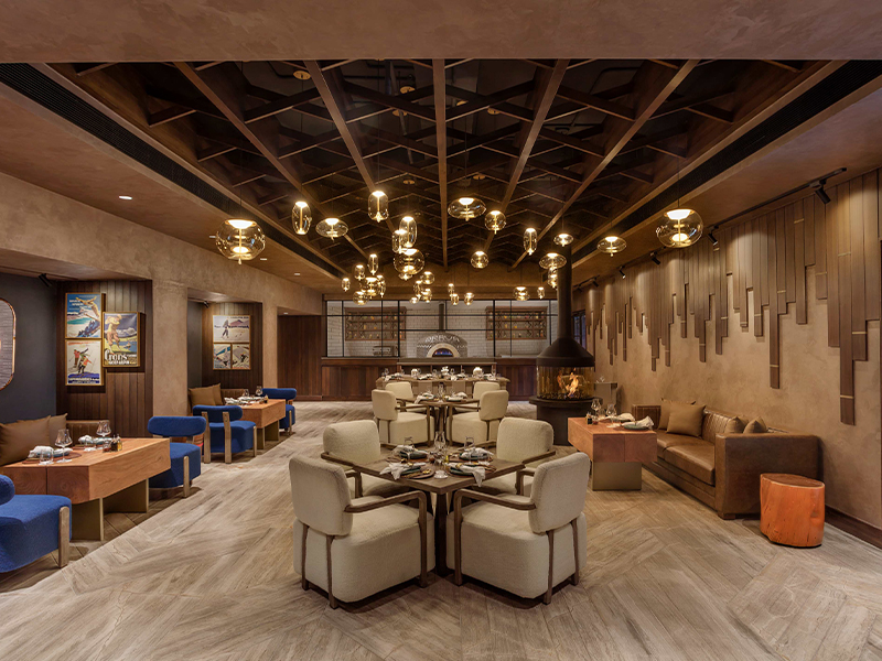 Upon entering, one is lured to ‘Chaikash’, the stylish tea lounge that opens up onto a wooden viewing deck perfect for indulging in the slow ritual of sipping tea along with a delectable patisserie. The Moroccan-inspired hookah lounge, ‘Calabash’ sends out a vibrant ambience infusing colourful locally crafted wall tiles, and traditional Moorish motifs and lamps. The menu ranges from Indian kebabs to mezze platters and some oriental favourites like rock shrimp tempura and sriracha chicken gyoza. At Clove, the all-day dining expects to savour continental fares to the robust flavours of Indian tandoors and the aromatic Kashmiri staples like gushtaba and nadru yakni. A new entrant to Khyber’s dining scene is ‘Brava,’ reminiscent of a trattoria of the Italian Alps. The wood-fired pizzas are all the rage here and worth surrendering an evening. If Indian grills and barbeque evenings are your kind, Nouf with the stunning views of the Pir Panjal is the place to be.